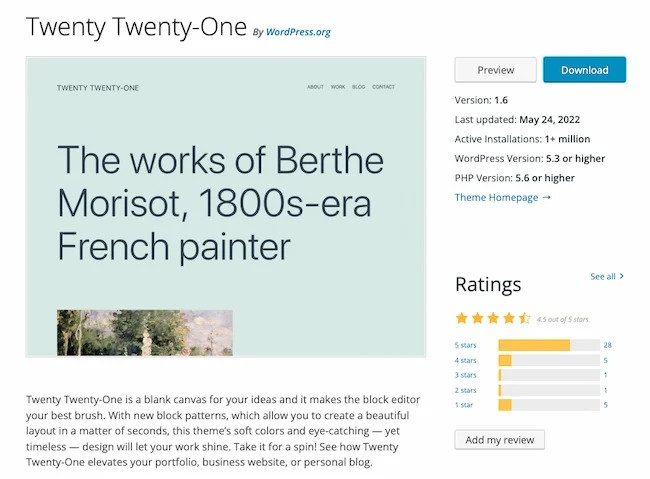 Voor meer controle over het uiterlijk van uw site, kunt u kiezen uit honderden gratis en premium WordPress-thema’s die beschikbaar zijn via de WordPress-themamap of externe marktplaatsen. Met meer kleuropties, zijbalken, achtergrondopties, lettertypen en lay-outs om uit te kiezen, kunt u uw site zo ontwerpen dat deze uw doelgroep aanspreekt en ervoor zorgen dat deze er uniek uitziet.