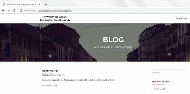 Net zoals het u een standaardthema biedt, bevat WordPress een standaardstartpagina die automatisch een lijst met uw nieuwste blogberichten weergeeft.