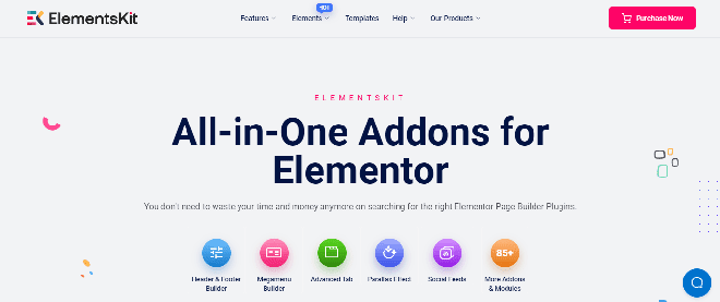De beste methode om minder plug-ins op uw site te gebruiken, is door een multifunctionele plug-in te kiezen. Als u één multifunctionele plug-in op uw site hebt geïnstalleerd, moet u 10 extra plug-ins vervangen. Om je Elementor-prestaties en -snelheid geoptimaliseerd te houden, kun je kiezen voor de alles-in-één Elementor-add-on ElementsKit die je tal van doeleinden zal dienen door 85+ widgets, 10+ modules en vooraf gebouwde sjablonen te bieden. Bovendien faciliteert deze geavanceerde Elementor-paginabuilder Elementor-gebruikers op talloze manieren.