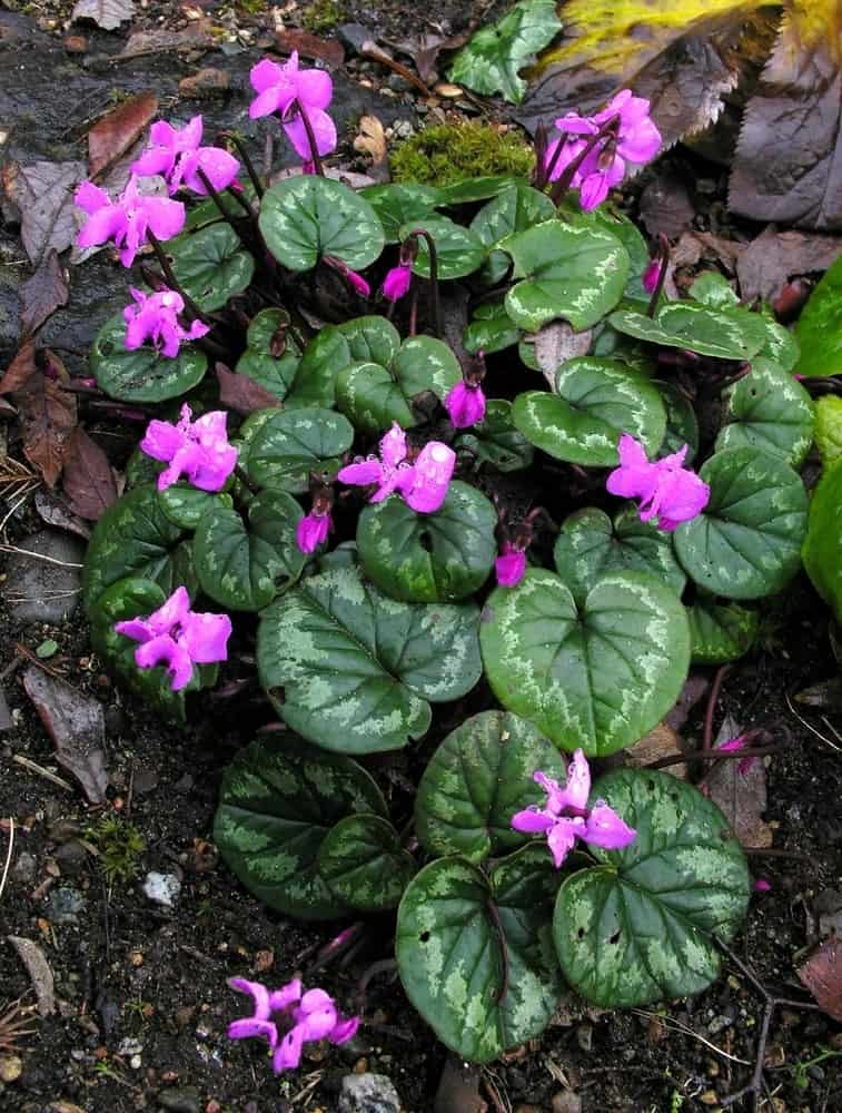 Deze soort is gemakkelijk te kweken en winterhard in USDA zone 6. Andere veel voorkomende namen voor deze soort zijn oosterse cyclamen of rondbladige cyclamen. Het behoort tot de sleutelbloemfamilie . De bladeren zijn diepgroen van kleur en rond en hartvormig. Ze hebben zilver- en grijstinten. De bloemen zijn wit, roze of magenta van kleur en steken door het dichte gebladerte heen. De bloemen hebben gedraaide bloembladen en zijn aan de basis donkerder van kleur.