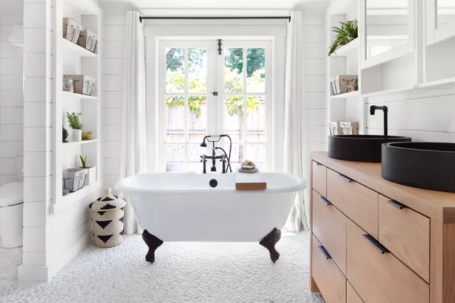 Vervuil je nieuwe badkamer bovendien niet in één keer met accessoires . Probeer een tijdje met alleen de essentie te leven om te zien wat je echt nodig hebt in de ruimte. Vervolgens kunt u strategisch items kiezen die passen bij zowel uw ontwerpvoorkeuren als uw levensstijl.