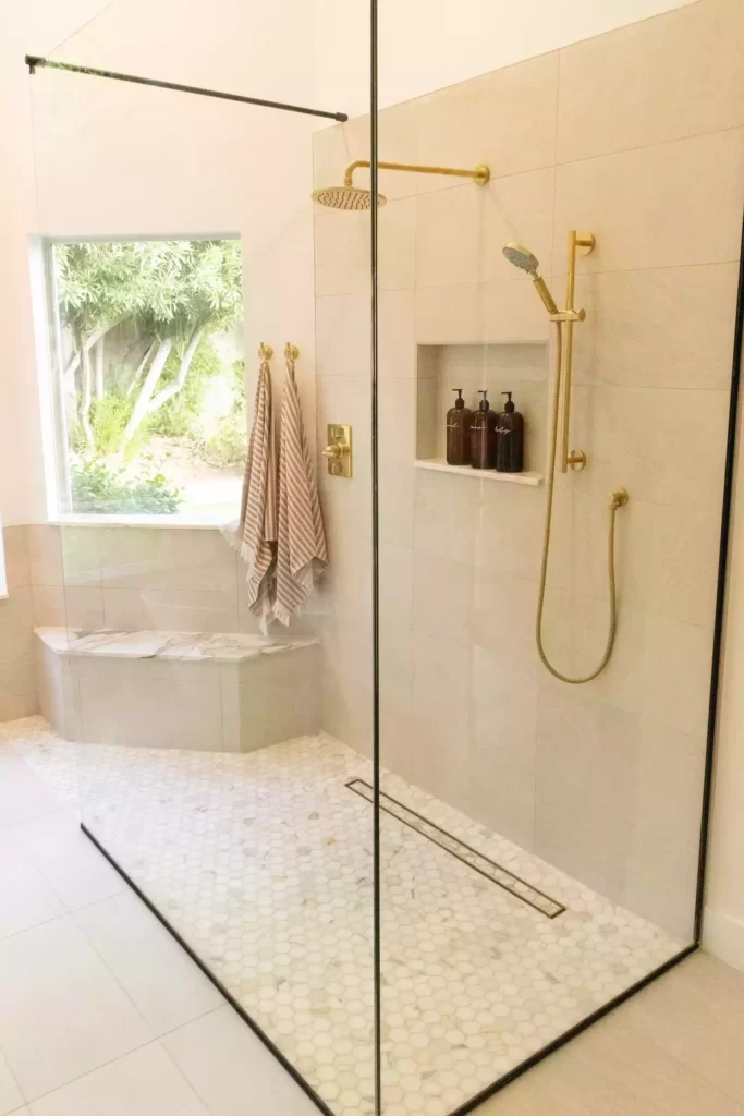 02. Gebruik kleine, getextureerde tegels op de douchevloer