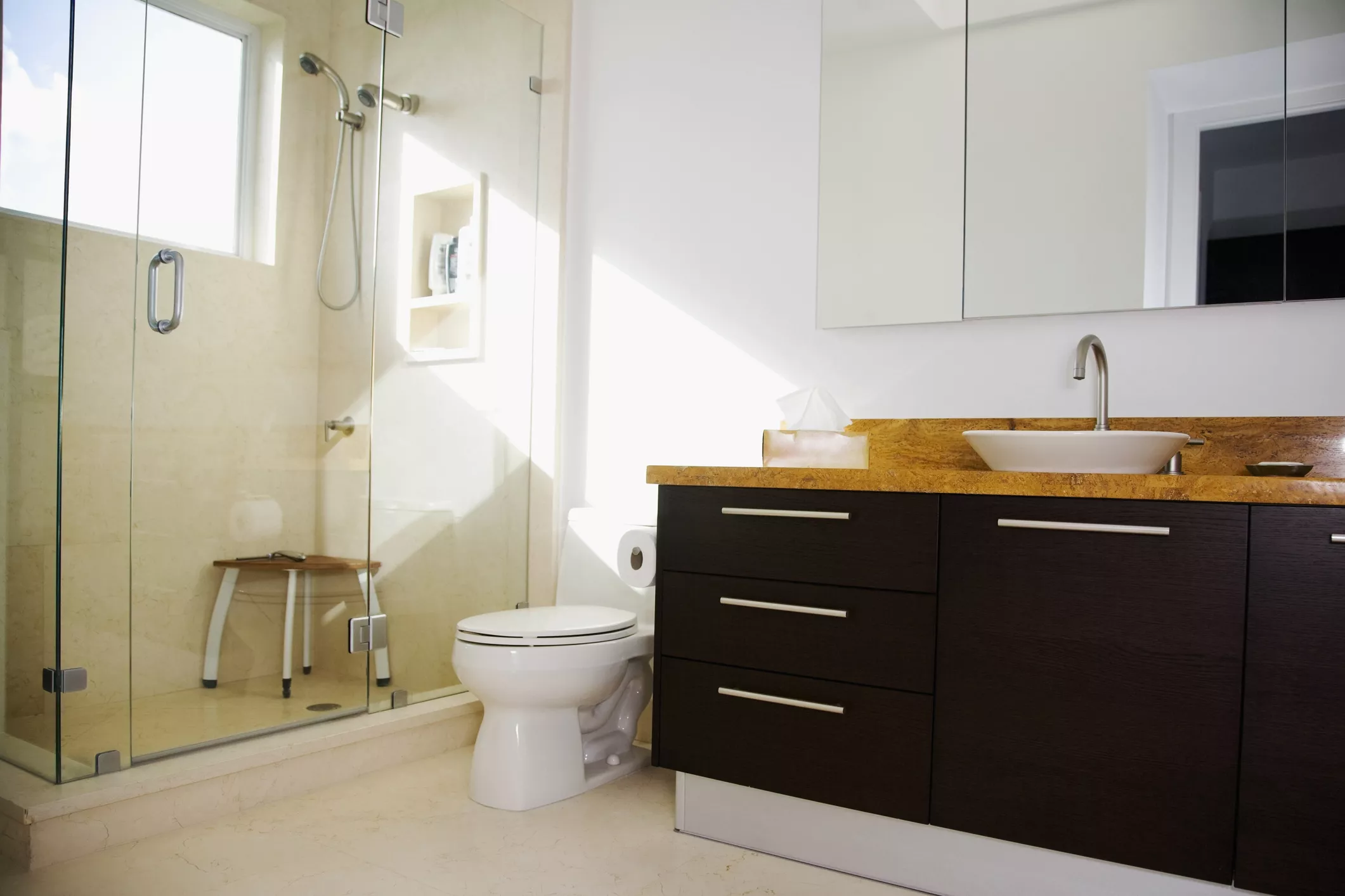 En als uw huis nog een familiebadkamer heeft die wel een badkuip of een bad/douchecombinatie heeft, is er geen reden waarom uw primaire badkamer het bad niet zou kunnen weglaten ten gunste van een luxe douche. Je belangrijkste zorg zou moeten zijn hoe je je badkamer gaat gebruiken.